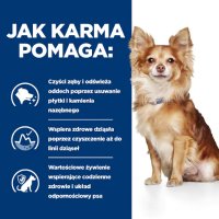 HILL'S PD Prescription Diet Canine t/d Dental Care Hill's Prescription Diet t/d Mini Dental Care, kurczak to karma stworzona specjalnie dla dorosłych psów mniejszych ras, by wpierać zdrowie ich zębów. Receptura tej karmy podstawowej bazuje na innowacyjnej formule czyszczącej zęby.