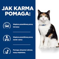 Karma dla kotówHill's PRESCRIPTION DIET y/d z kurczakiem to pełnoporcjowa dietetyczna karma wspomagająca zmniejszanie zawartości jodu w karmie w przypadkach nadczynności tarczycy u dorosłych kotów. Ta karma ma ograniczoną zawartość jodu. Wspiera zdrowie tarczycy Twojego kota. Karmienie tym produktem przez długi okres ma kluczowe znaczenie dla skuteczności uzyskania korzyści oferowanych przez produkt.