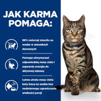 Karma dla kotów Hill's PRESCRIPTION DIET Metabolic z kurczakiem to pełnoporcjowa karma dietetyczna wspomagająca redukcję nadmiernej masy ciała oraz utrzymywanie zdrowej masy ciała u dorosłych kotów. Ta karma ma niską gęstość energetyczną. Klinicznie sprawdzone żywienie pomagające kotom naturalnie tracić na wadze. Nawet niewielka nadwaga może wpływać na jakość życia zwierzęcia i jego relacje z rodziną, gdyż może skracać czas zabawy, wpływać na mobilność oraz mieć niekorzystny wpływ na ogólny stan zdrowia Twojego kota przez długi okres. Utrzymanie idealnej masy ciała może wpływać na oczekiwaną długość życia, ograniczając ryzyko występowania schorzeń związanych z wagą.