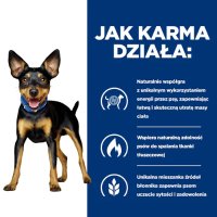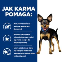 Karma dla psów ras miniaturowych Hill's PRESCRIPTION DIET Metabolic z kurczakiem to pełnoporcjowa karma dietetyczna wspomagająca redukcję nadmiernej masy ciała oraz utrzymywanie zdrowej masy ciała u dorosłych psów. Ta karma ma niską gęstość energetyczną. Klinicznie sprawdzone żywienie pomagające psom naturalnie tracić na wadze. Nawet niewielka nadwaga może wpływać na jakość życia zwierzęcia i jego relacje z rodziną, gdyż może skracać czas zabawy, wpływać na mobilność oraz mieć niekorzystny wpływ na ogólny stan zdrowia Twojego psa przez długi okres. Utrzymanie idealnej masy ciała może wpływać na oczekiwaną długość życia, ograniczając ryzyko występowania schorzeń związanych z wagą.