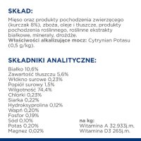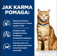 To pełnoporcjowa dietetyczna karma dla zwierząt domowych, której celem jest ograniczenie nawrotów kamieni struwitowych (przyczyna choroby dolnych dróg moczowych kotów, FLUTD) u dorosłych kotów. Ta dietetyczna karma ma właściwości zakwaszające mocz i zawiera umiarkowany poziom magnezu. Karma o smaku kurczaka.