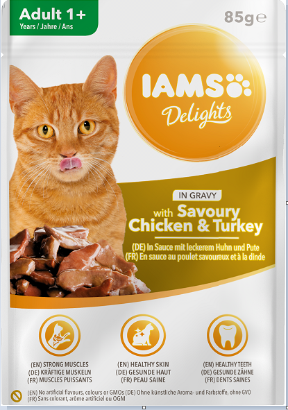 IAMS Naturally - Karma dla Dorosłych Kotów z Aromatycznym Kurczakiem i Indykiem w Sosie 85 g