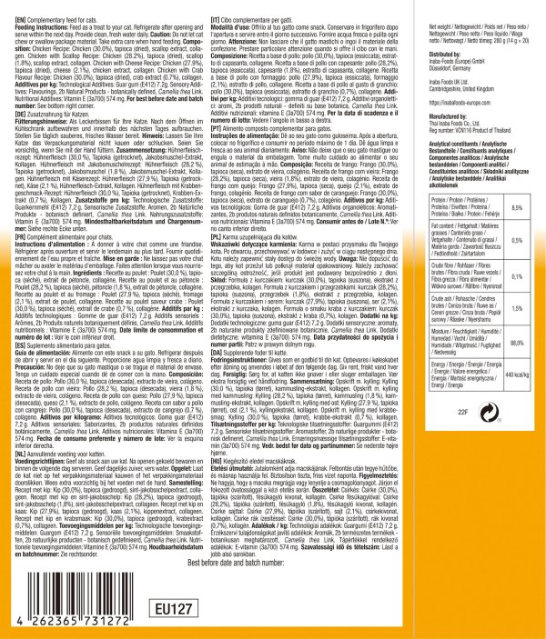 Przysmaki są wzbogacone o kolagen, który wspiera zdrowie skóry i sierści, oraz witaminę E, która działa jako przeciwutleniacz. Dzięki wygodnej tubce, kot może samodzielnie lizać przysmak, co jest ulubioną formą podawania nagród dla wielu czworonogów.