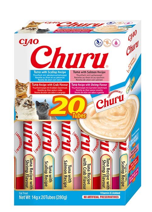 INABA Churu to wysokiej jakości przysmaki w tubkach, które sprawią radość Twojemu kotu. Przysmaki te oparte są na tuńczyku i owocach morza, z różnorodnymi smakami, takimi jak tuńczyk z przegrzebkami, tuńczyk z łososiem, tuńczyk o smaku kraba czy tuńczyk o smaku krewetki. Każda tubka zawiera naturalne składniki, a formuła została wzbogacona o kolagen, który wspomaga zdrowie skóry i sierści, oraz witaminę E, która działa jako przeciwutleniacz.