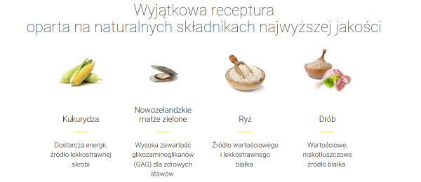 Dzięki taurynie i L-karnitynie, karma wspiera prawidłową pracę serca, a lekkostrawna receptura z wysokiej jakości składników, takich jak suszone białko drobiowe, ryż i wysłodki buraczane, zapewnia zdrową i zbilansowaną dietę. Karma jest również wzbogacona o małże nowozelandzkie, które pomagają w utrzymaniu zdrowych stawów.