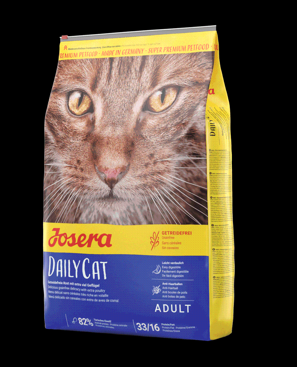 Josera DailyCat to bezzbożowa karma dla dorosłych kotów ze specjalnym błonnikiem pokarmowym, który przeciwdziała kulom włosowym. Karma przeznaczona przede wszystkim dla kotów z wrażliwym układam pokarmowym. Odpowiednia zarówno dla kotów wychodzących i niewychodzących. Wartościowe kwasy tłuszczowe, witaminy i mikroelementy dla zdrowej skóry oraz lśniącej sierści. Zawiera włókna dietetyczne pomagające ograniczyć powstawanie kul włosowych. Właściwie dobrane zioła i owoce wzbogacają recepturę i zapewniają wyjątkowe, różnorodne doznania smakowe.