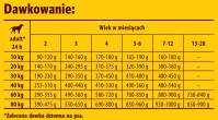 Podane ilości są orientacyjne, a dawkowanie należy dostosować do indywidualnych potrzeb psa. W przypadku wzrostu, należy monitorować tempo przyrostu wagi, dostosowując porcje, by zapobiec nadmiernemu przyrostowi masy ciała.