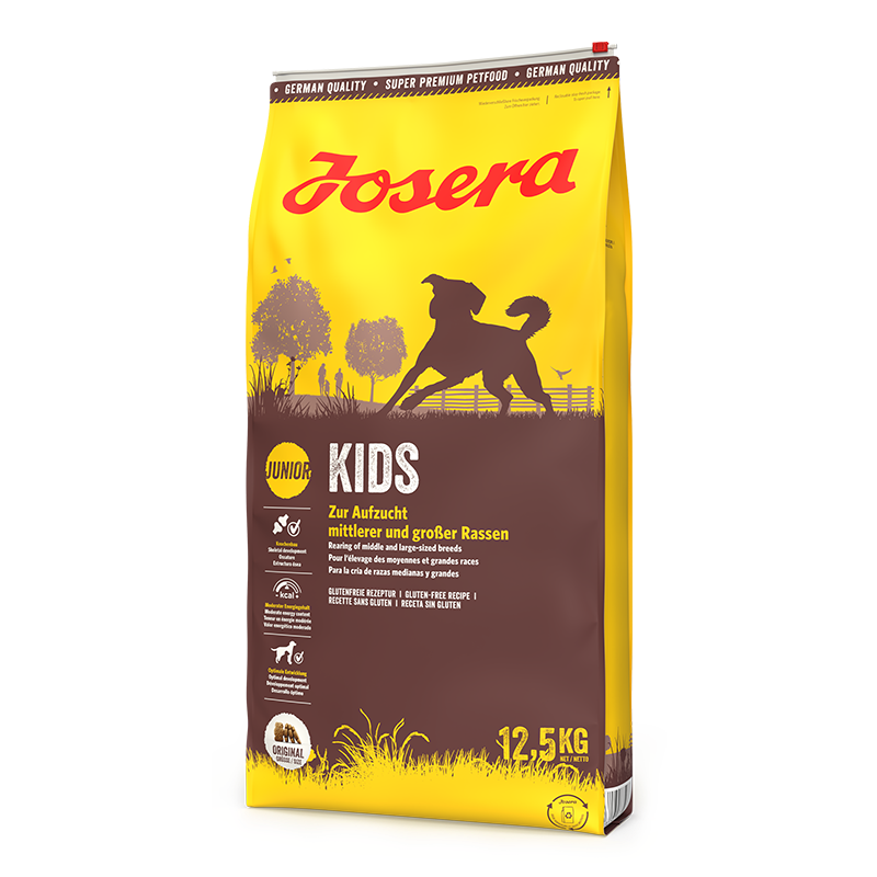 Josera Kids – Bezglutenowa karma Super Premium dla szczeniąt i młodych psów średnich i dużych ras. Lekkostrawna formuła, wzbogacona o olej z łososia (źródło kwasów DHA i EPA), zapewnia niezbędne składniki odżywcze dla prawidłowego rozwoju, a specjalnie zaprojektowana granulacja pomaga utrzymać zdrowie zębów i zapobiega zadławieniom.