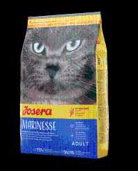 Josera Marinesse to kompletna, hipoalergiczna i lekkostrawna, w pełni zbilansowana karma z łososiem stworzona ze specjalnej receptury zaspokajającej potrzeby żywieniowe nawet najwybredniejszych dorosłych kotów. Polecana jest przede wszystkim kotom z wrażliwym układem pokarmowym, które cierpią na nietolerancję pokarmową. Chętnie spożywana przez koty żyjące w domu jak również te, które swój czas spędzają na powietrzu.