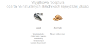 Karma wolna jest od różnego rodzaju sztucznych barwników i konserwantów. Składa się z wysokowartościowych, zdrowych i naturalnych składników. Krokieciki pozbawione są składników z potencjałem alergennym. Wysoka zawartość wybornego łososia (30%) oraz bezzbożowa formuła dla wymagających kotów.