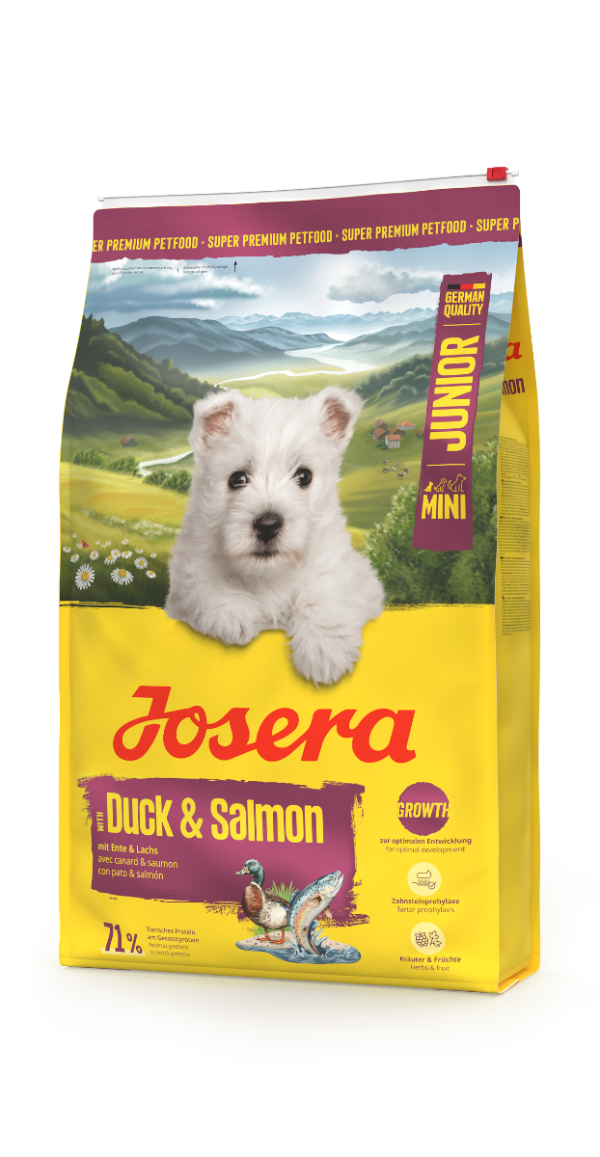 Josera Mini Junior to kompletna i lekkostrawna, w pełni zbilansowana karma powstała ze specjalnej receptury zaspokajającej potrzeby żywieniowe dorastających szczeniąt wszystkich piesków małych ras. Można zacząć ją podawać od 3 tygodnia życia naszej małej pociechy do ukończenia 8 miesiąca życia. Składniki użyte podczas produkcji tej karmy wspomogą rozwój fizyczny maluszka. Wpłyną również na rozwój funkcji mózgowych