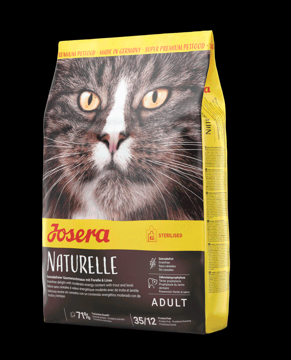 Bezzbożowa karma dla kotów JOSERA Naturelle z soczewicą i pstrągiem stanowi pyszny i pełnowartościowy posiłek. Bezzbożowa receptura i optymalnie dobrane składniki są idealnym rozwiązaniem dla kotów sterylizowanych i po kastracji. Zawiera wysokowartościowe, zdrowe i naturalne składniki, które nie są genetycznie modyfikowane. Zmniejsza ryzyko powstawania kamienia nazębnego. Zapobiega kamicy moczowej, poprzez kontrolę pH moczu.