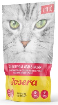 Linia mokrych karm Josera Paté to szeroki asortyment smacznych pasztetów, które urozmaicą dietę Twojego kota. Optymalnie zbilansowane karmy zawierają wysokiej jakości mięso i podroby oraz wszystkie składniki odżywcze niezbędne do zapewnienia Twojemu pupilowi zdrowia i prawidłowego funkcjonowania. Pełnoporcjowa karma dla dorosłych kotów. Karma zawiera 70% smacznej wołowiny z kurczakiem i warzywami, olej z łososia jako źródło kwasów tłuszczowych omega-3 i omega-6 oraz dietetyczne włókna, które zapobiegają powstawaniu kul włosowych.
