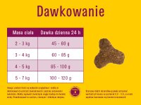 Podane ilości są wyłącznie poglądowe i należy je dostosować do potrzeb żywieniowych i poziomu aktywności zwierzaka. Należy zapewnić zwierzęciu stały dostęp do świeżej wody. Przechowywać w suchym, ciemnym i chłodnym miejscu.