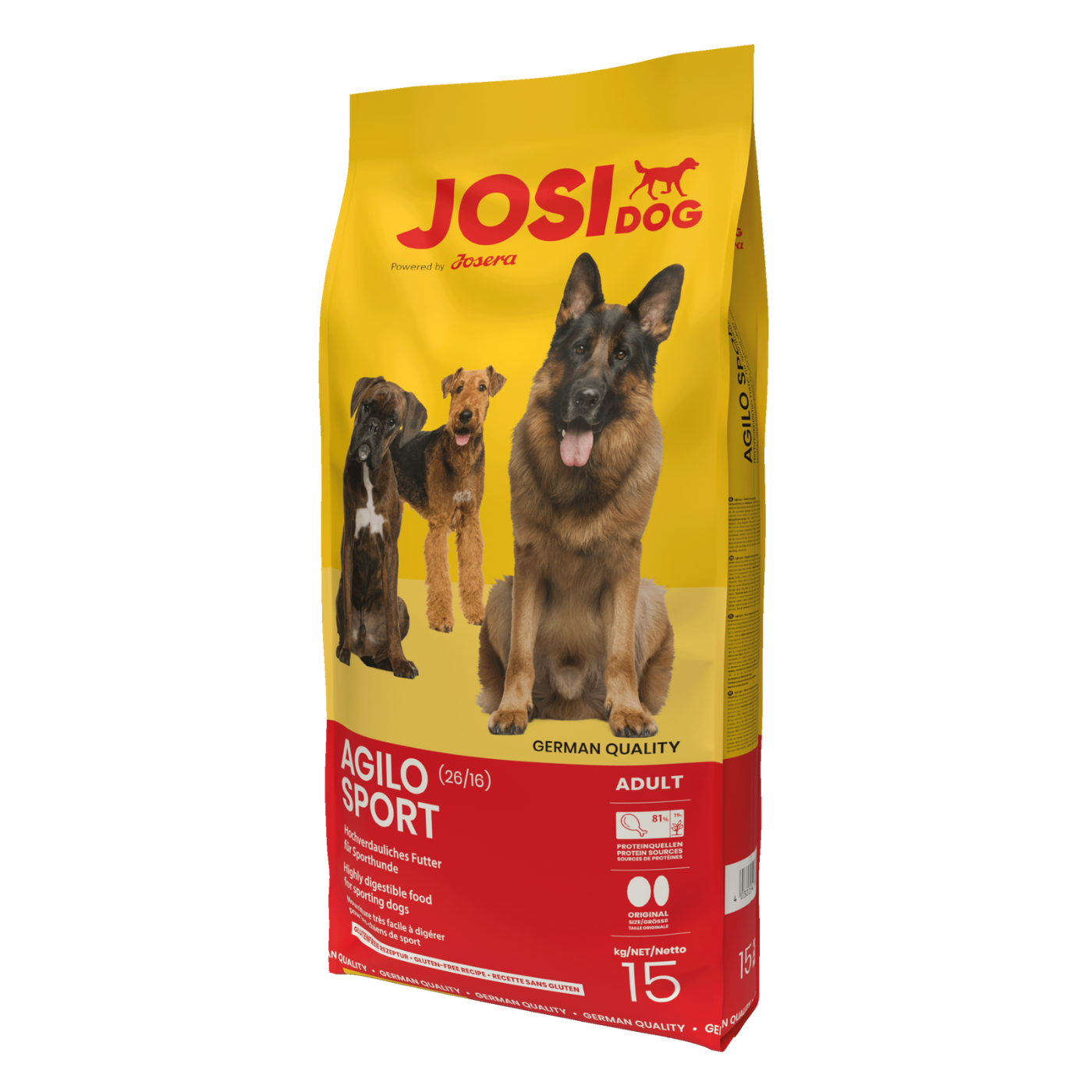 JosiDog Agilo Sport to lekkostrawna karma dla dorosłych psów wszystkich ras, o wysokim zapotrzebowaniu energetycznym. Bezglutenowa receptura JosiDog Agilo Sport jest dedykowana psom aktywnym o zwiększonym zapotrzebowaniu energetycznym. Zawarte w karmie kwasy tłuszczowe zapewniają zdrową skórę i lśniącą sierść.