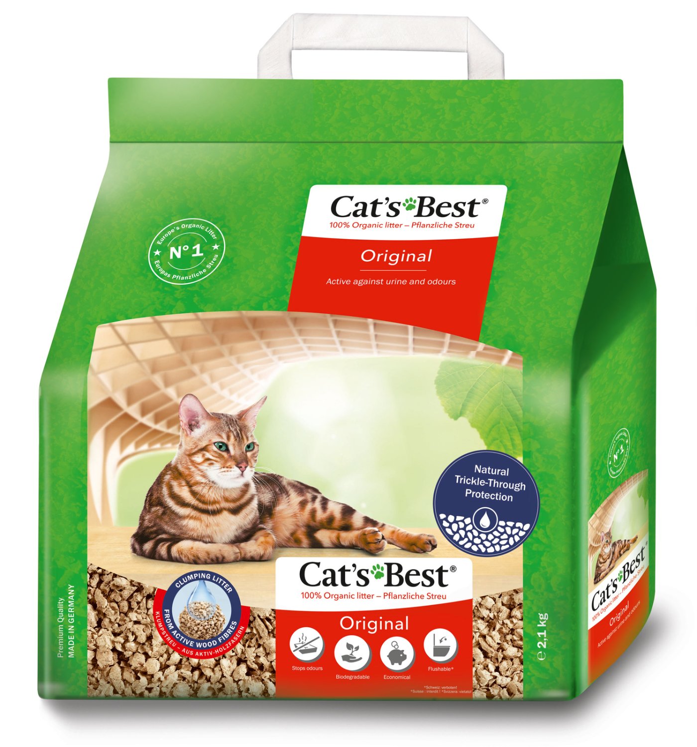 Żwirek Cat's Best Eco Plus jest jedynym żwirkiem, który ulega biodegradacji, można go po prostu wysypać do kosza z odpadami biologicznymi lub usunąć w toalecie.