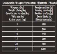 Dobierając porcję uwzględniaj wiek, kondycję oraz poziom aktywności psa.