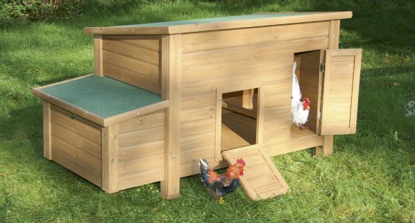 Domek jest łatwy do złożenia, a solidna konstrukcja zapewnia komfort i bezpieczeństwo kur.