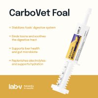 Lab-v CarboVet Źrebię to skuteczna pomoc w zachowaniu zdrowia przewodu pokarmowego młodych koni, zapewniając im kompleksową ochronę i wsparcie w codziennej diecie.