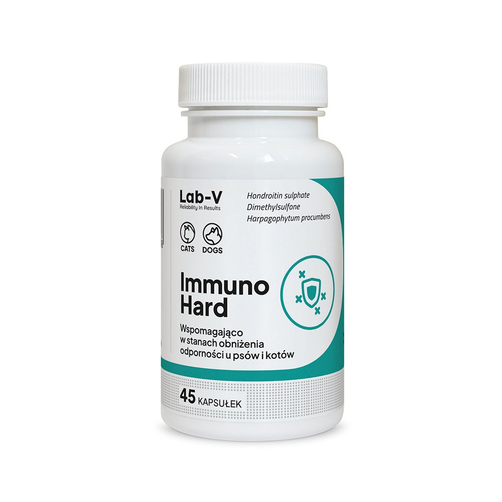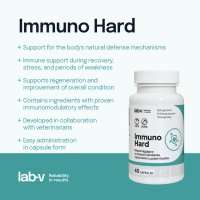 Lab-v Immuno Hard to zaawansowany preparat w formie kapsułek, opracowany we współpracy z lekarzami weterynarii, specjalnie dla psów i kotów, które potrzebują wsparcia w walce z obniżoną odpornością.