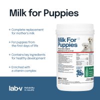 Lab-v Mleko Dla Szczeniąt to niezastąpione wsparcie w rozwoju młodych psów, zapewniające pełnowartościowe odżywianie w każdym etapie życia.