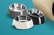 Nowoczesna, estetyczna miska na pokarm z melaminy i stali szlachetnej.
