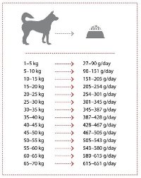 | Waga dorosłego psa (kg) | Dzienna dawka (g) |
