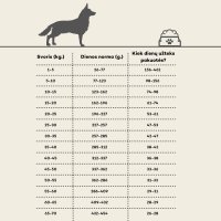 | Waga dorosłego psa (kg) | Dzienna dawka (g) |
