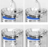 Poidełko posiada awaryjne przechowywanie wody (120 ml w górnej misce), co zapewnia zwierzęciu dostęp do wody przez jeden dzień w przypadku awarii zasilania. Dwa tryby ciśnienia wody (wodospad lub fontanna) pozwalają dostosować jego działanie do preferencji zwierzęcia. Dodatkowo, pompka działa bardzo cicho (40 dB), dzięki czemu nie zakłóca ciszy nocnej.