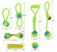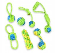 NUXIE® Zestaw Zabawek Dla Psa to 7 zabawek wykonanych z grubego, bawełnianego sznura, które są idealne do zabawy i higieny jamy ustnej psa. Przeznaczone dla małych i średnich ras psów, zabawki wspomagają czyszczenie zębów i masowanie dziąseł podczas zabawy.