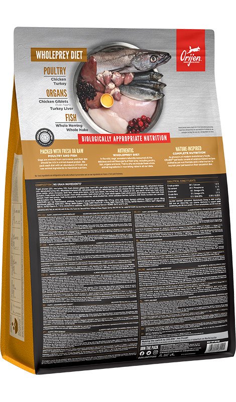 Orijen Puppy nie zawiera produktów ubocznych pochodzenia zwierzęcego.