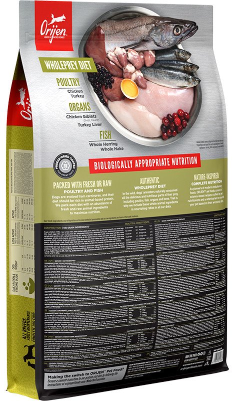 Pełnoporcjowa karma dla starszych psów wszystkich ras z drobiem, rybami i jajami ściółkowymi. Składniki odżywcze świeżego drobiu oraz ryb pozytywnie wpływają na proces żywieniowy starszego psa. Karma Orijen Senior, ma na celu odpowiednią dietę wśród czworonożnych staruszków.