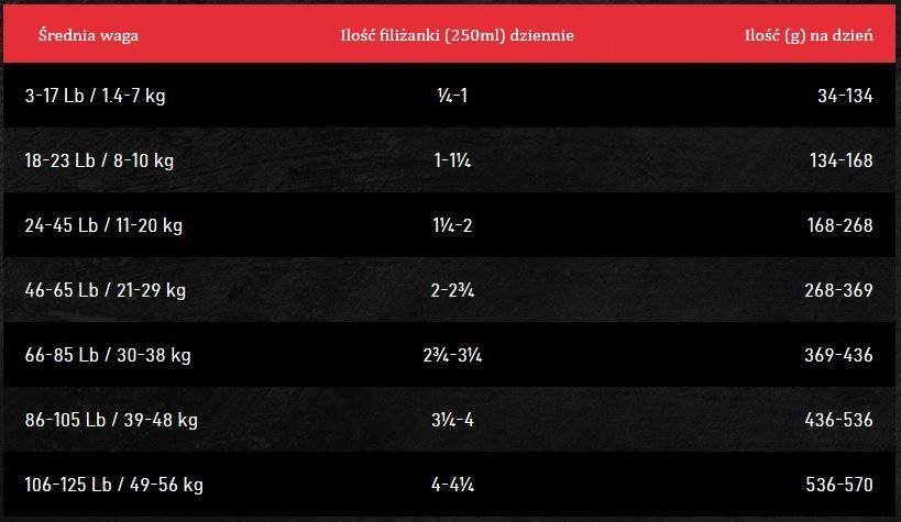 Oven Baked Tradition podaję się co najmniej 20% mniej niż karmę ekstrudowaną.