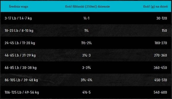 Karma ze świeżych ryb jest odpowiednia dla dorosłych psów wszystkich ras, aby zachować zdrowie, aktywność i rozwój zdrowych tkanek ciała.