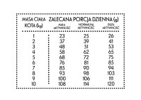 | Masa ciała kota | Zalecana porcja dzienna | |||