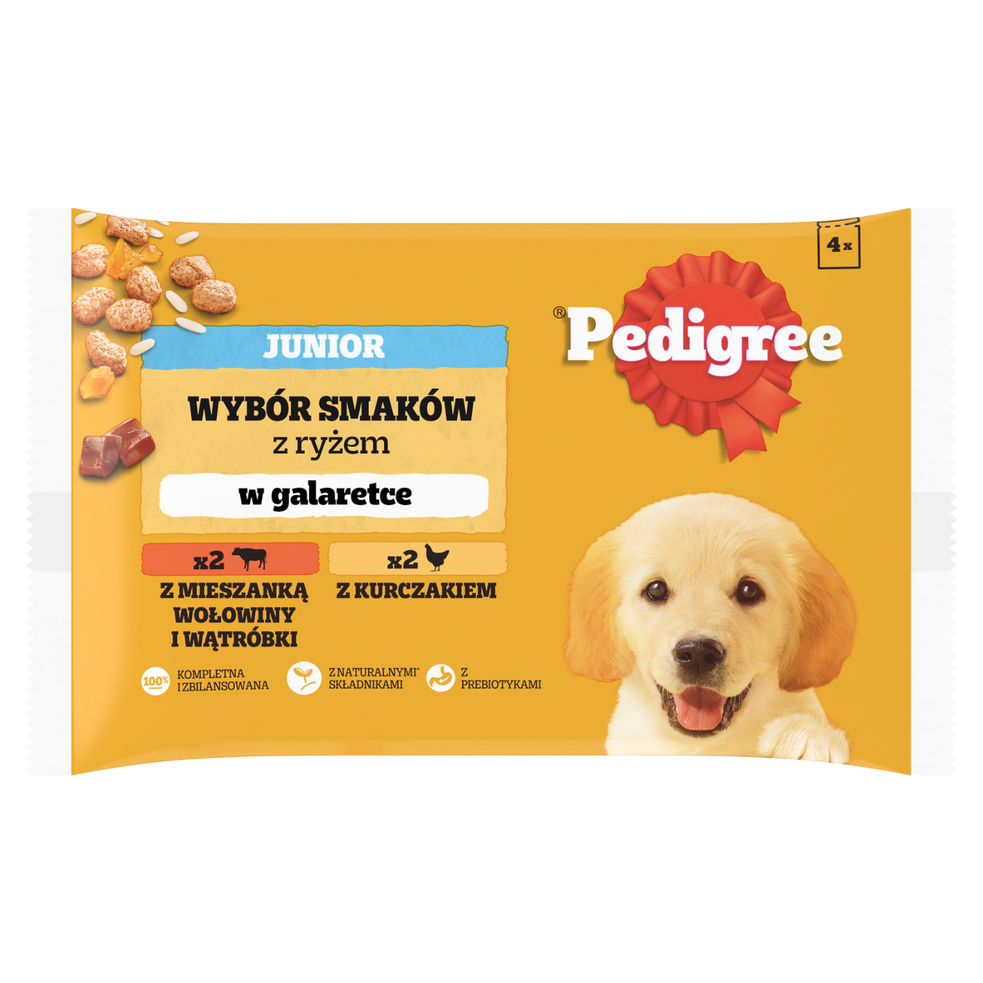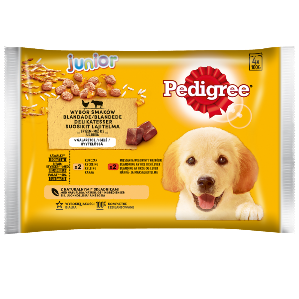 Pedigree Mokra Karma Dla Szczeniąt W Galaretce (Z Kurczakiem I Ryżem, Z Wołowiną I Ryżem) 4x100g - Opis Produktu