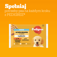 Rekomendujemy podawać mokre i suche jedzenie pełnoporcjowe Pedigree Junior