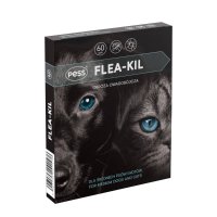 Obroża FLEA-KIL to obroża owadobójcza dla psów i kotów średnich ras. Przeznaczona jest do ochrony przed owadami (szczególnie pchłami) znajdującymi się na zwierzęciu oraz w jego bliskim otoczeniu. Substancja aktywna (geraniol) działa stale i niezmiennie od momentu założenia obroży na szyję zwierzęcia, chroniąc przed pasożytami.