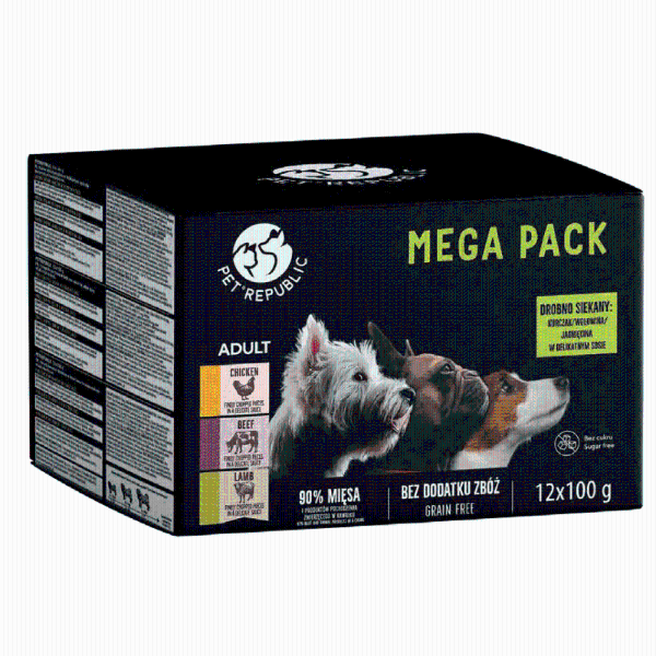 Pet Republic karma mokra dla psów małych ras kawałki w delikatnym sosie MIX 3 smaków 12x100g