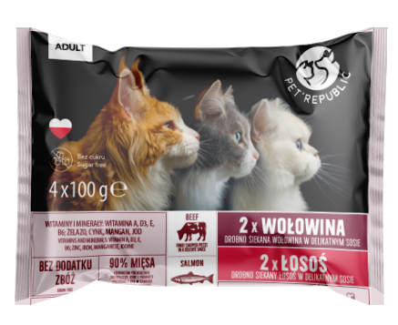 PetRepublic saszetki dla kota wołowina łosoś 4x100g