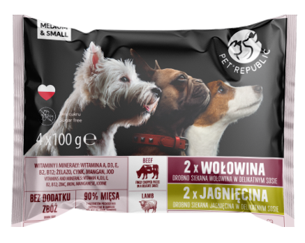 PetRepublic saszetki dla psa małe rasy wołowina - jagnięcina 4x100g