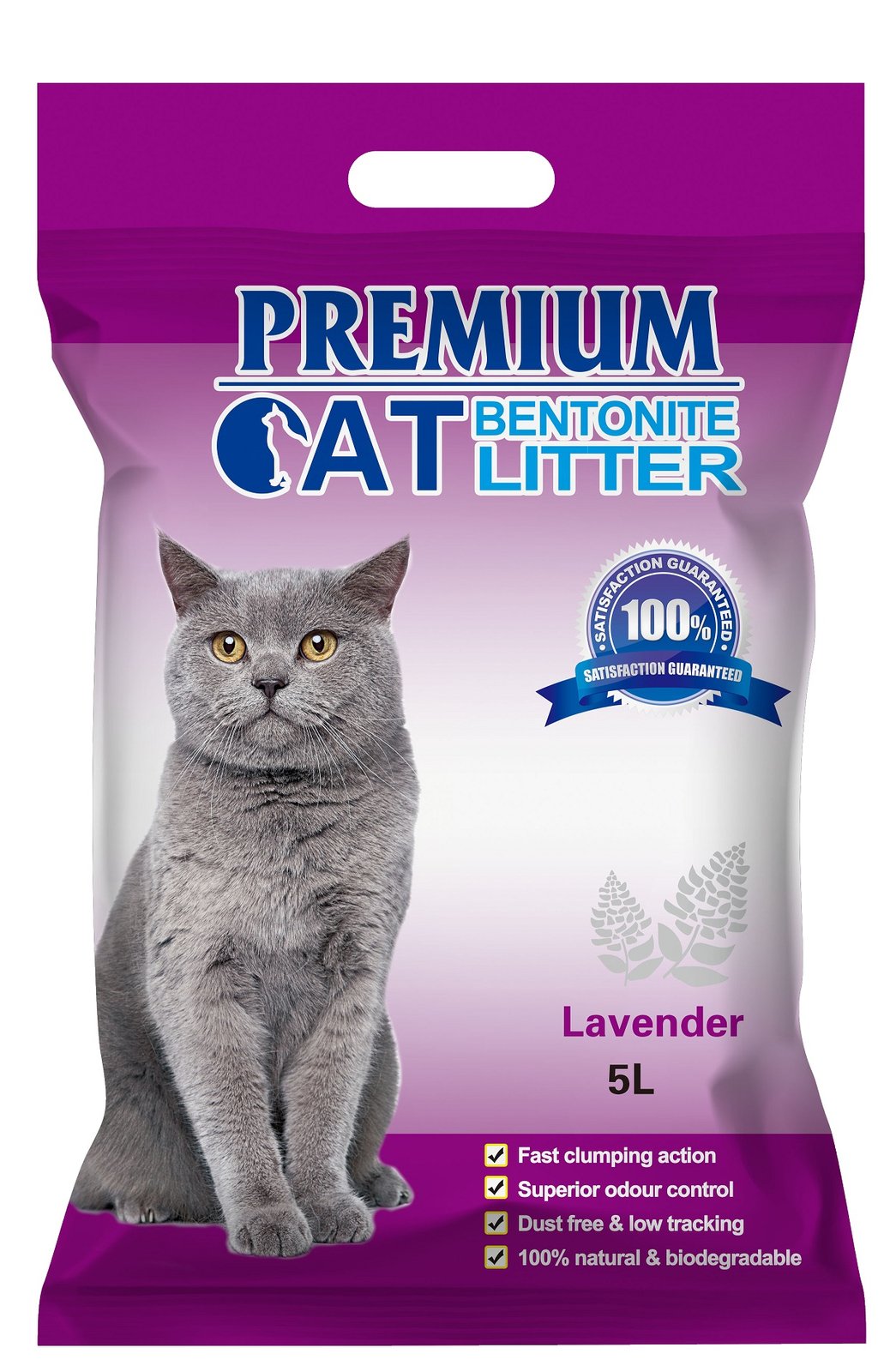 Premium Cat Żwirek Bentonitowy Zbrylający - Lawendowy Dla Kota 5L