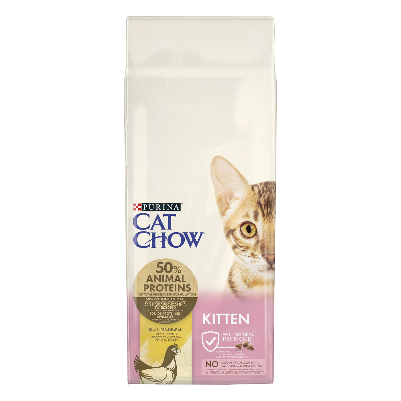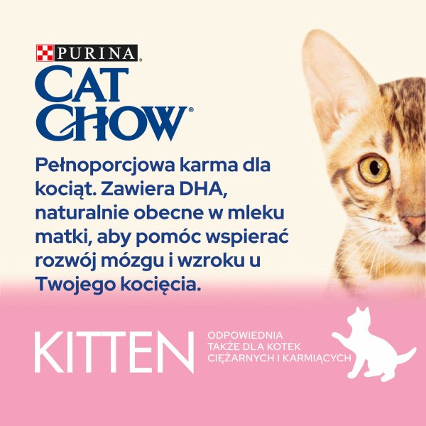 Purina Cat Chow Kitten to sucha karma dla kociąt zawierająca wszystkie składniki odżywcze potrzebne młodemu kotu do prawidłowego wzrostu. Zapewnia pełnoporcjowe i zbilansowane żywienie kociąt od 6 tygodnia do 1 roku życia. Odpowiednia również dla kotek ciężarnych i karmiących.