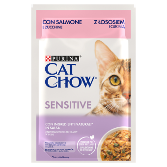 Purina Cat Chow Sensitive Karma Z Łososiem I Cukinią W Sosie 85g - Opis Produktu