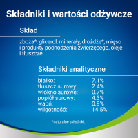 - Zboża (60% ekstrudowanej mąki kukurydzianej, 5% mąki pszennej)