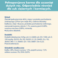 Zawiera kwas tłuszczowy - DHA - niezbędny dla prawidłowego rozwoju szczeniąt.
