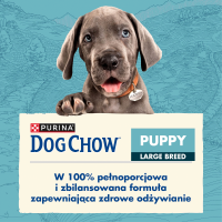 Purina DOG CHOW Large Breed Puppy do 2 roku życia z indykiem jest karmą specjalnie dostosowaną do potrzeb szczeniąt ras od 25 do 70kg. Zawiera antyoksydanty wspierające system odpornościowy oraz DHA, które jest kluczowe dla wzrostu szczeniąt. Odpowiednia także dla suk w okresie ciąży i laktacji dużych ras.