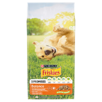 Sucha karma dla psa PURINA Friskies Balance to kompletny posiłek, który dostarcza dorosłym zwierzętom odpowiednio zbilansowanych składników odżywczych. Produkt przygotowany został z myślą o żywieniu dorosłych psów wszystkich ras, od miniaturowych aż po olbrzymie. Skład zawiera zarówno składniki zwierzęce, jak również roślinne. Zbilansowane wartości wapnia i fosforu w karmie wspierają zdrowie każdego dorosłego psa, a dawka składników mineralnych wspiera stawy i kościec. Karma o smaku kurczaka z warzywami.