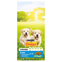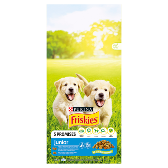PURINA Friskies Junior to pełnoporcjowa karma sucha przeznaczona dla szczeniąt po 6. tygodniu życia, zapewniająca wszystkie niezbędne składniki odżywcze w okresie intensywnego wzrostu. Zbilansowane proporcje białka i tłuszczu dostosowane są do zwiększonego zapotrzebowania młodych psów na energię oraz składniki budulcowe wspierające rozwój mięśni, kości i narządów.