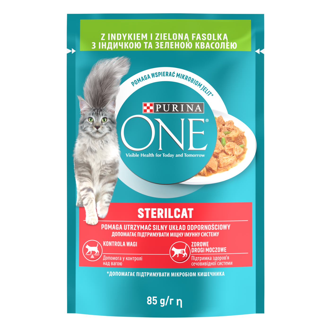 Purina One Sterilcat z indykiem i zieloną fasolką to połączenie lekkości, smaku i korzyści zdrowotnych, które wspierają witalność i dobre samopoczucie dorosłych kotów po sterylizacji.